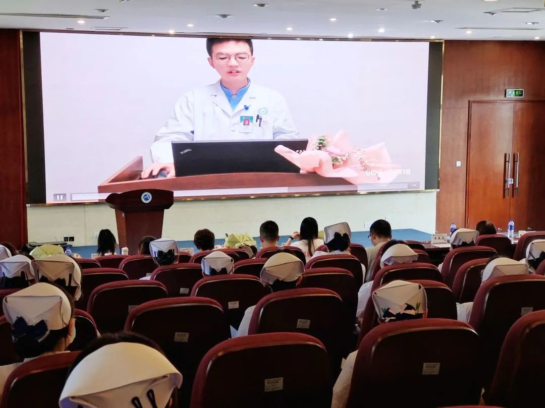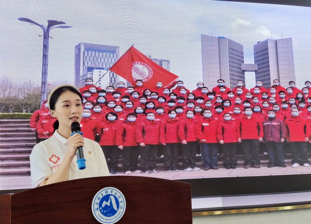 現(xiàn)就職龍巖市第二醫(yī)院的詹仕鑫校友通過云端的方式講述了他作為首批援鄂醫(yī)療隊(duì)一員,進(jìn)駐武漢金銀潭醫(yī)院的故事。他目睹了武漢確診人數(shù)在短時(shí)間內(nèi)突破2萬;見證了火神山醫(yī)院在10天內(nèi)拔地而起;親歷了所有黨員面對(duì)黨旗宣誓,“隨時(shí)準(zhǔn)備為黨和人民犧牲一切”“把最危險(xiǎn)的工作留給黨員”的莊嚴(yán)時(shí)刻。他隨即下定決心加入中國共產(chǎn)黨,向黨組織遞交了入黨申請(qǐng)書。2022年,他又再次出征援滬,主動(dòng)申請(qǐng)?jiān)谧钇D難、感染風(fēng)險(xiǎn)最高的脫間通道崗位,進(jìn)行對(duì)所有出艙隊(duì)員的監(jiān)督把控,做方艙里的“最后一道防線”。“生逢盛世,何其有幸”,他鼓勵(lì)在場青年醫(yī)學(xué)生立足崗位從先輩手中接過歷史的接力棒,繼續(xù)奔跑,以實(shí)際行動(dòng)迎接黨的二十大。