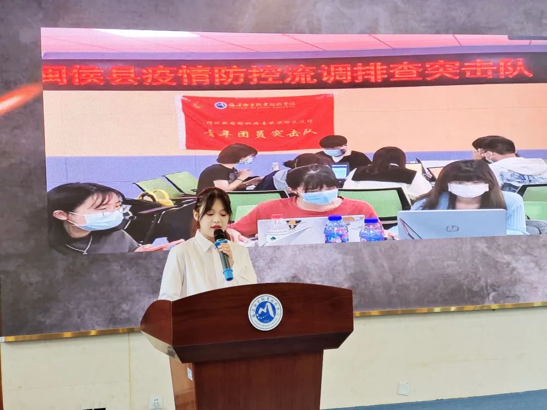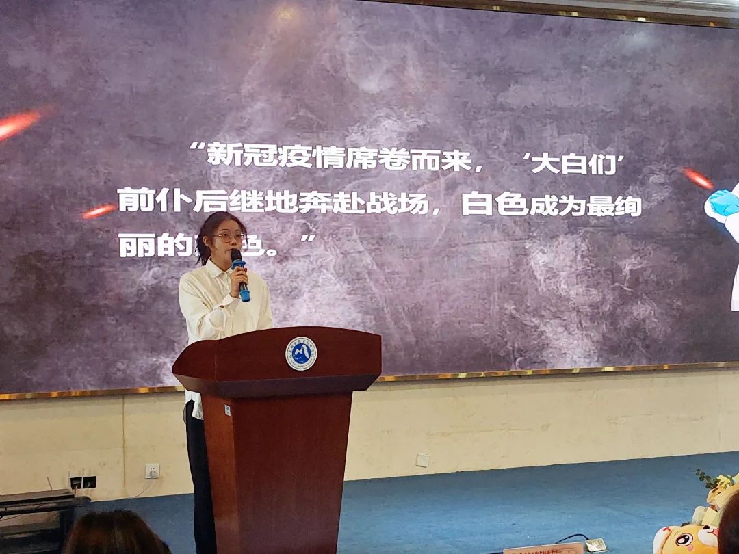 在校生代表許欣穎、張惠英分別以“ 微光成炬,我成了你們”“我的流調(diào)日記”為題,分享她們在后方戰(zhàn)“疫”一線保駕護(hù)航的故事。流調(diào)工作如同一場沒有硝煙的戰(zhàn)爭,所有參加抗“疫”的志愿者們,精銳出戰(zhàn)、沖鋒在前,不辭辛勞、不懼風(fēng)險(xiǎn),迎朝露、伴月光,全情投入,承擔(dān)起看似瑣碎而又不可缺的大量工作,用自己的行動(dòng)為這場戰(zhàn)“疫”默默奉獻(xiàn),用一道道微光匯聚成希望的火炬,照亮了人民對(duì)美好生活的向往。身為醫(yī)學(xué)生,她們通過此次“實(shí)戰(zhàn)”,錘煉了自己的本領(lǐng),并深刻認(rèn)識(shí)自己醫(yī)學(xué)生的使命責(zé)任。