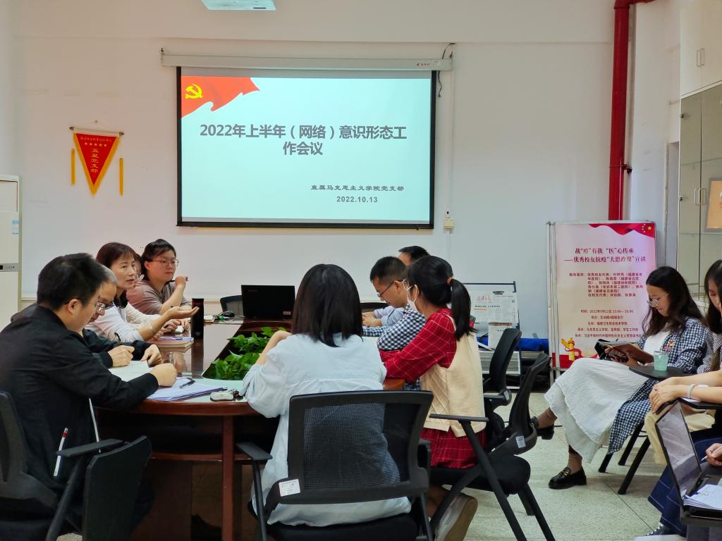 10月13日上午,直屬馬克思主義學院黨支部2022年上半年(網絡)意識形態工作會議在行政樓107會議室召開。支部全體黨員參加了會議,會議由黨支部副書記來朋珍主持。