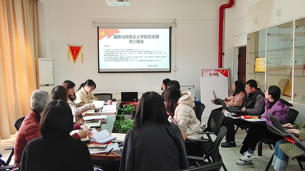 2023年2月9日,直屬馬克思主義學院黨支部開展2023年第一次黨小組理論學習會議,會議由黨支部副書記來朋珍主持。