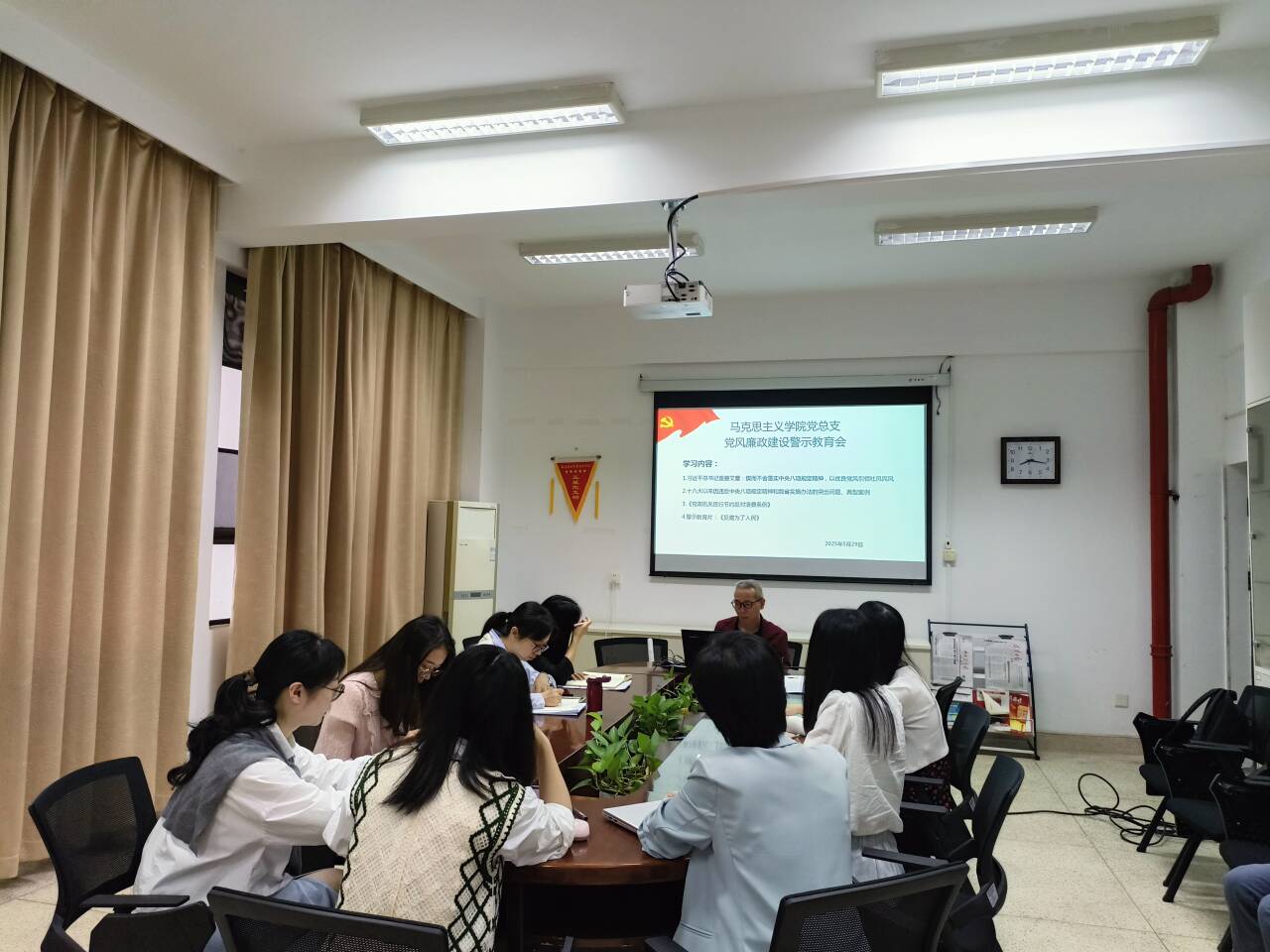 為深入貫徹中央八項規定精神學習教育,扎實推進黨風廉政建設工作,5月29日,馬克思主義學院組織召開了黨風廉政建設警示教育會。此次會議由馬院黨總支副書記賴文金主持,馬院深入貫徹中央八項規定精神學習教育讀書班成員參會。