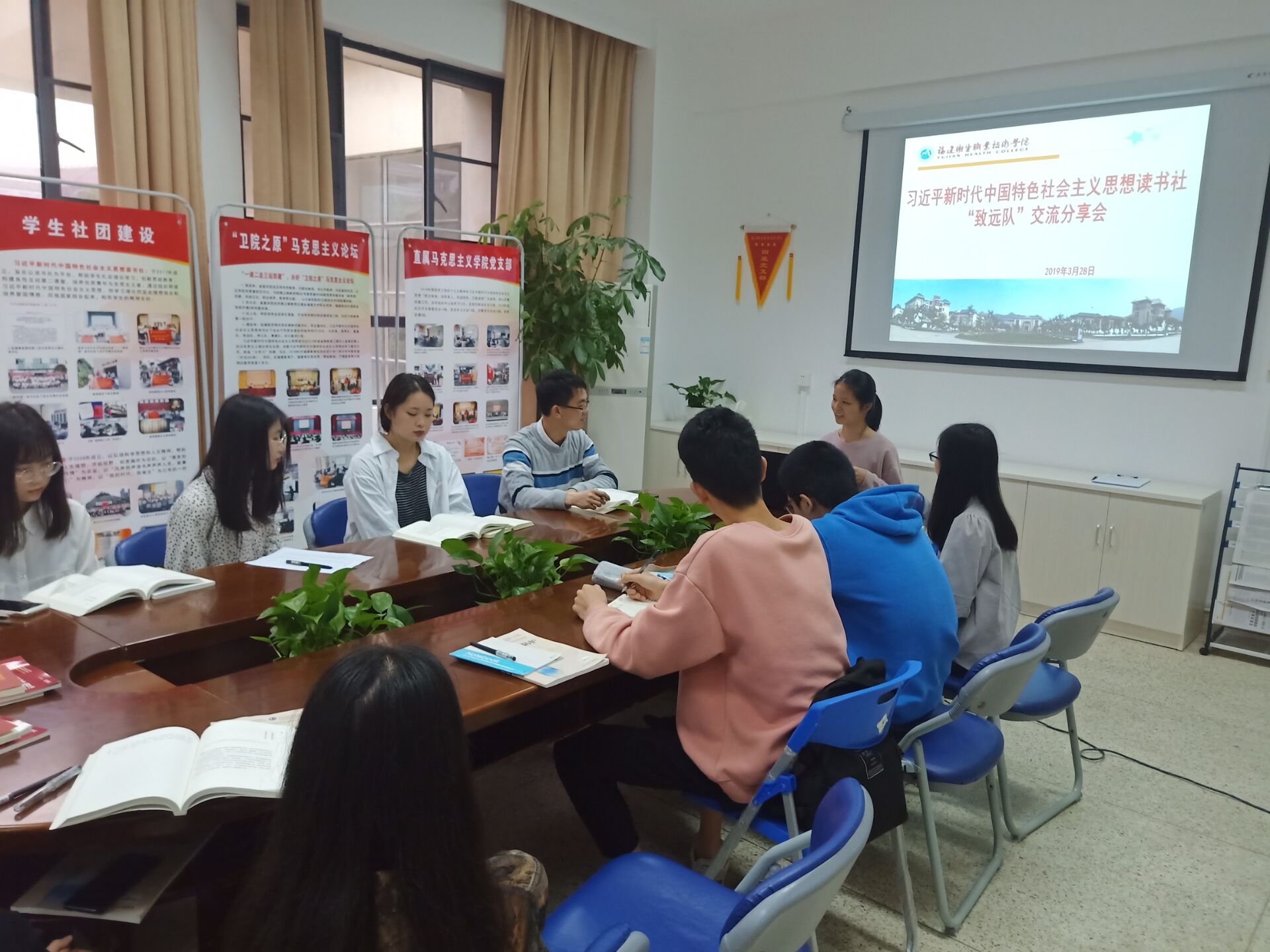 2019年3月28日下午,馬克思主義學院習近平新時代中國特色社會主義思想讀書社“致遠隊”在行政樓107會議室開展讀書活動。這次活動由指導老師江洪老師主持,讀書社“致遠隊”成員參加了此次活動。