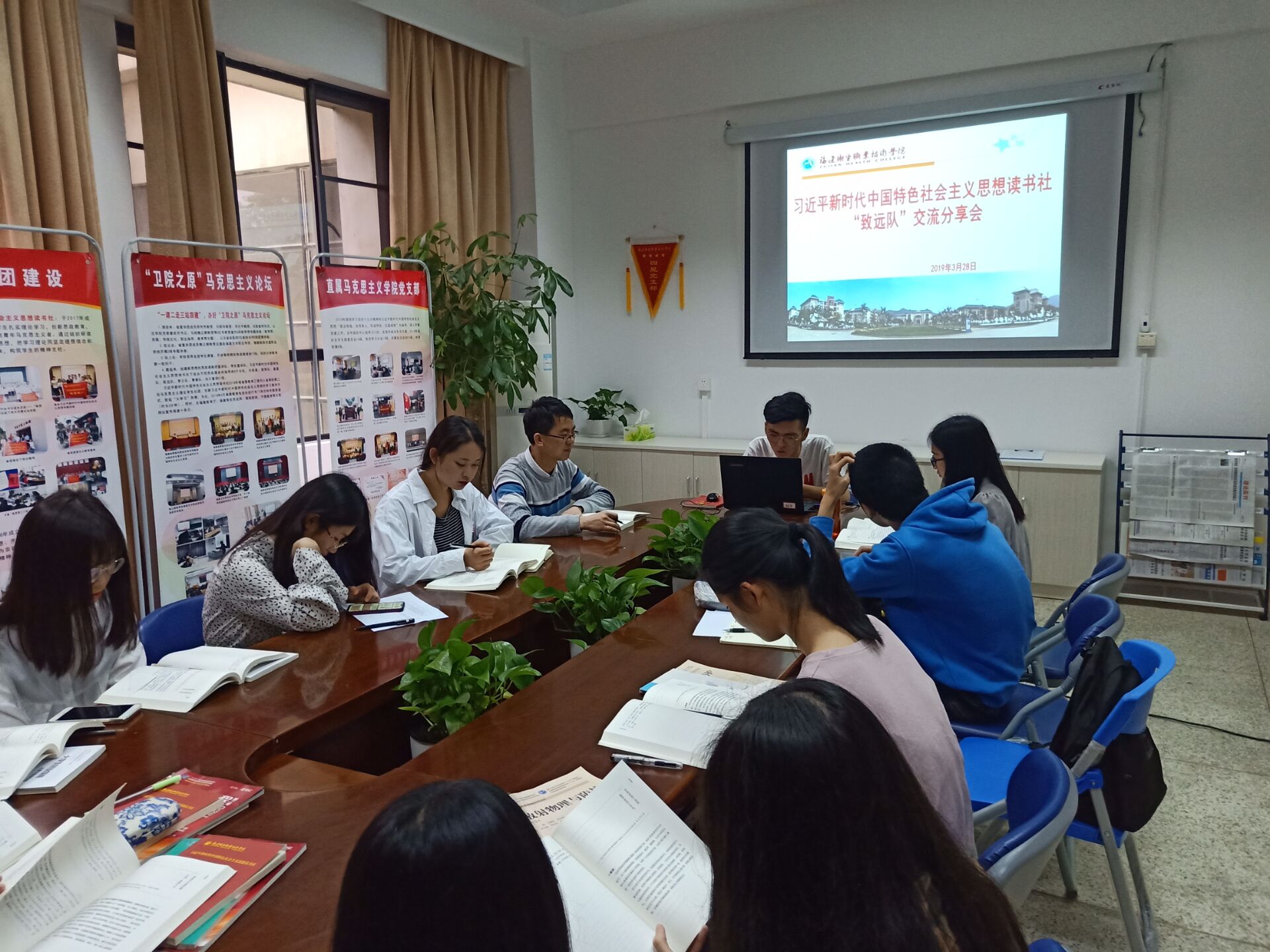 2019年3月28日下午,馬克思主義學(xué)院習(xí)近平新時(shí)代中國(guó)特色社會(huì)主義思想讀書社“致遠(yuǎn)隊(duì)”在行政樓107會(huì)議室開(kāi)展讀書活動(dòng)。這次活動(dòng)由指導(dǎo)老師江洪老師主持,讀書社“致遠(yuǎn)隊(duì)”成員參加了此次活動(dòng)。
