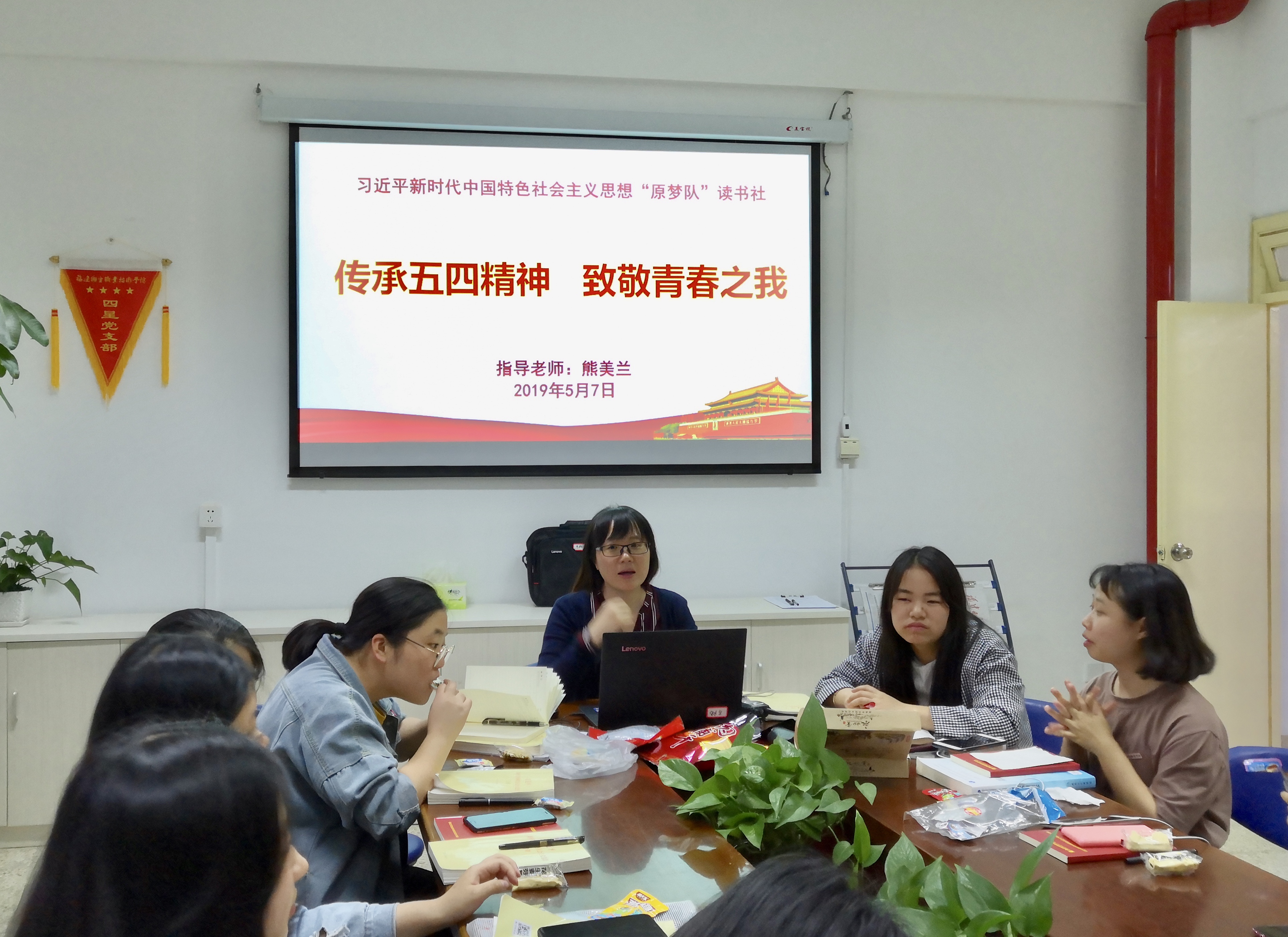 為學習貫徹習近平總書記在紀念五四運動100周年大會上的重要講話精神,我院習近平新時代中國特色社會主義思想讀書社原夢隊,于2019年5月7日17:40在馬院研討室開展“傳承五四精神,致敬青春之我”的主題研討。指導老師熊美蘭為此次主題研討拉開了序幕,詳細講述了爆發于100年前的五四運功,在民族危難之際,是一場以先進青年知識分子為先鋒、廣大人民群眾參加的徹底反帝反封建的偉大愛國革命運動,猶如響徹云霄的一聲春雷,切破了辛亥革命以來的沉悶局面,使中國反帝反封建的革命出現了新氣象,以磅礴之力鼓動了中國人民和中華民族實現民族復興的志向和信心。為更好地組織好研討會,熊老師事先以問題方式布置了學習任務。