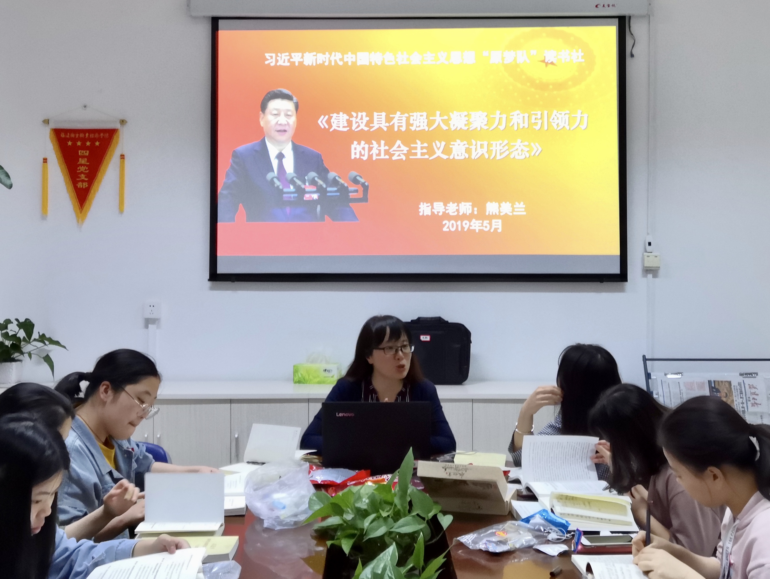 為學習貫徹《習近平新時代中國特色社會主義思想三十講》第十九講之牢牢掌握意識形態工作領導權及堅決打贏網絡意識形態斗爭的精神,我院習近平新時代中國特色社會主義思想讀書社原夢隊,于2019年5月7日18:30,在馬院研討室召開了專題學習會,由馬院院長、指導老師熊美蘭主講。