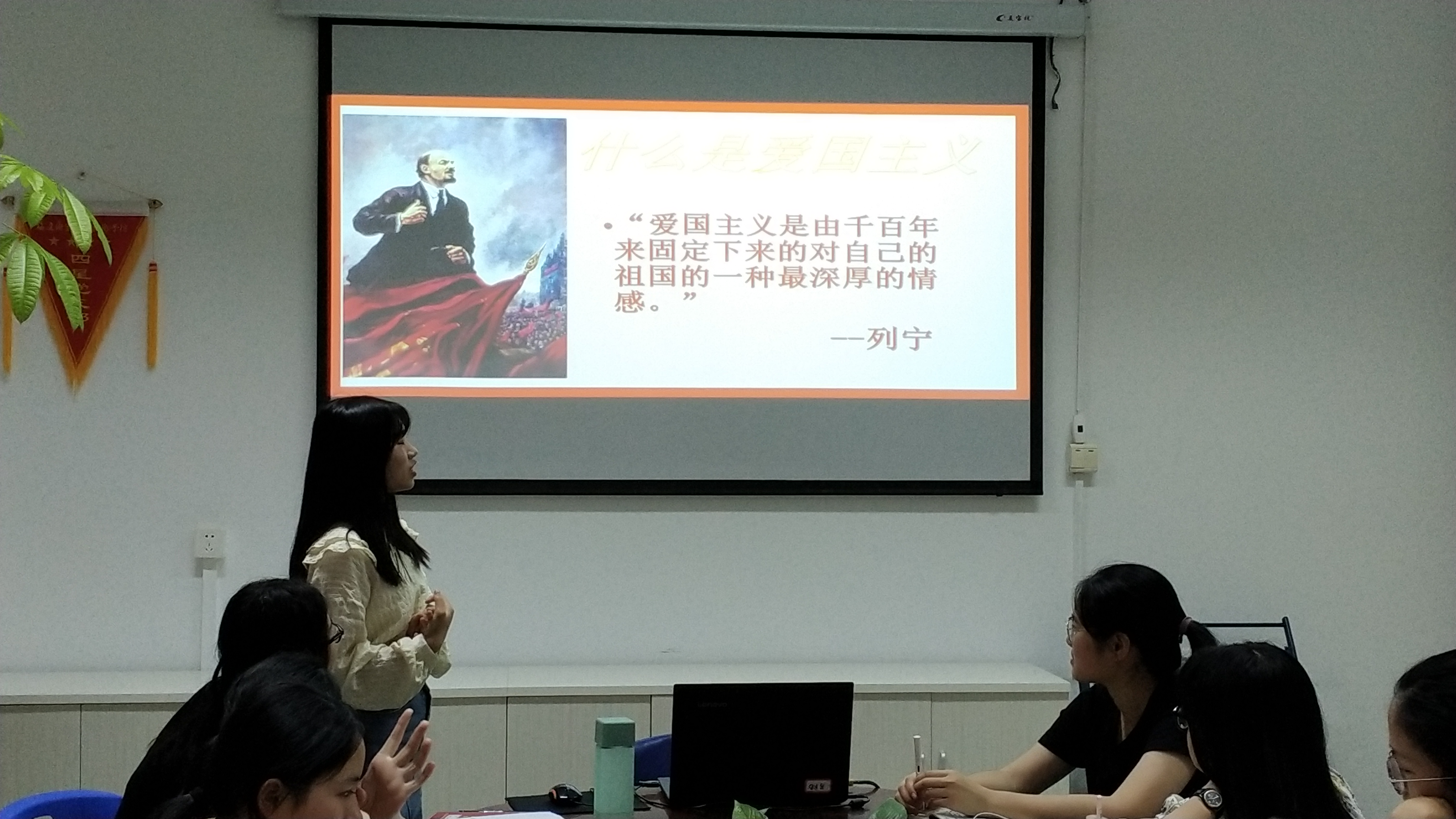 2019年是特殊的一年,是中華人民共和國成立70周年。在2019年6月15日下午,習近平新時代中國特色社會主義思想“星星隊”在馬院社團活動室107開展愛國主義專題宣講。宣講員為“星星隊”隊長林賀婷同學,出席此次宣講的有指導老師楊盈以及讀書社星星隊的同學們。