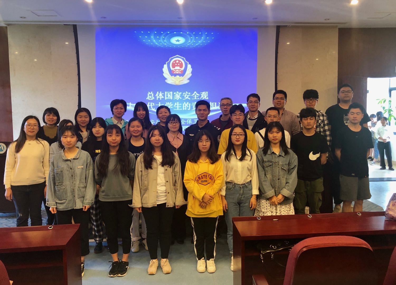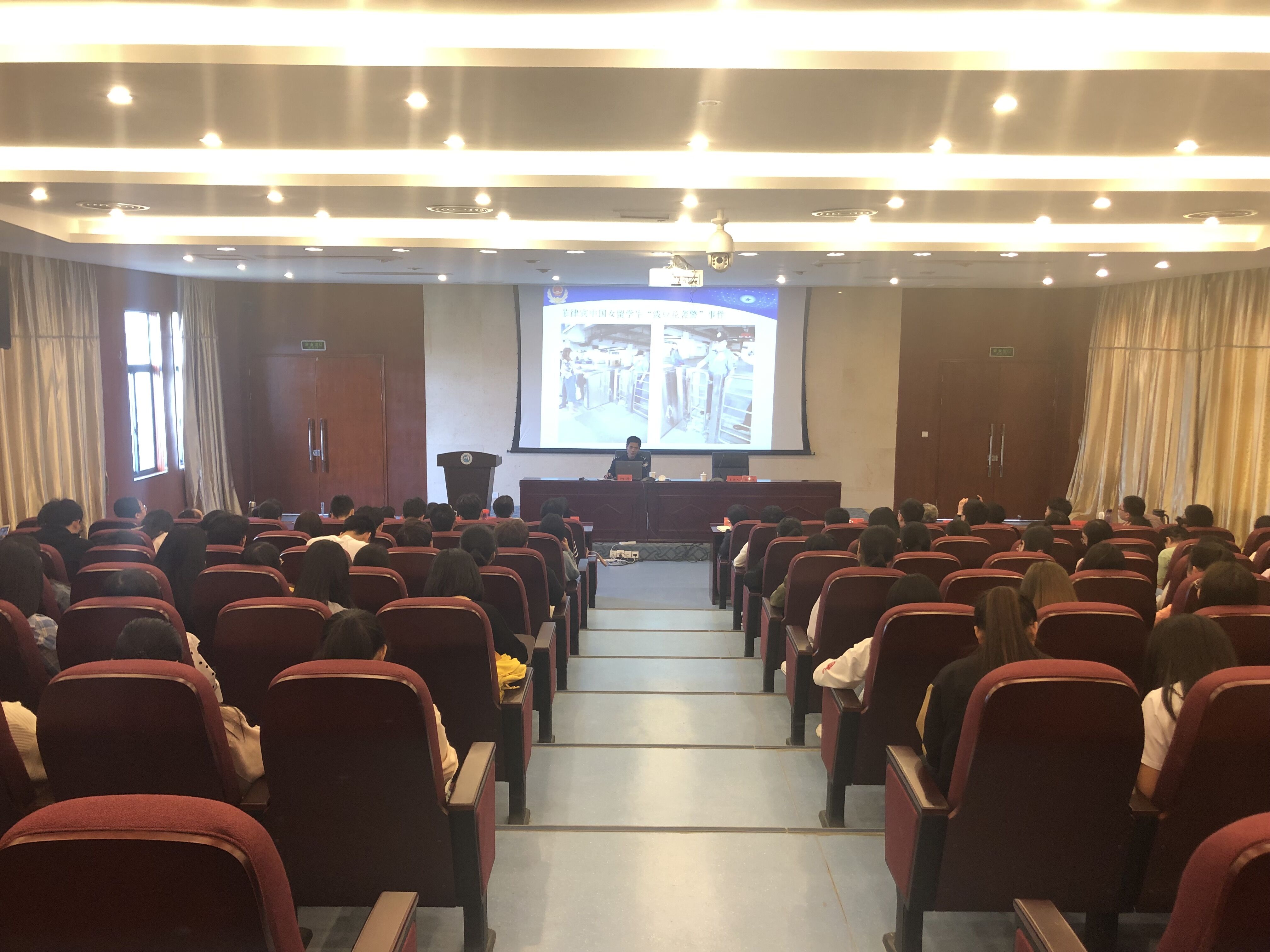 在講座中,何濤警長首先對總體國家安全觀作了簡要概述,結合敘利亞內戰等豐富案例,生動地介紹了國家安全與公民人身安全息息相關、我國高度重視國家安全及公民安全利益等內容。隨后,何警長從我國外部安全總體形勢、我國國內政治安全總體形勢兩方面分析了現階段我國國家安全的總體形勢,特別對高校領域可能會出現的幾個突出問題進行詳細介紹。最后,何警長對當代大學生樹立正確的國家安全觀提出了5點建議:一要堅定理想信念;二要注重個人言行;三要增強是非觀念;四要保障自身安全;五要自覺履行義務。