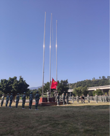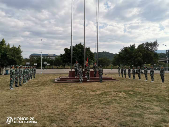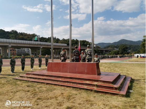 2019年9月23日,2019級新生軍訓總結大會暨開學典禮升旗儀式在操場舉行,迎著朝陽,“八一”學社成員邁著堅定的步伐來到國旗臺下,全場一片肅靜。在激昂的《義勇軍進行曲》中,升旗手振臂一揮,鮮艷的五星紅旗徐徐展開,在全場師生和教官的注目中,迎著初升的太陽,在晨曦中迎風飄揚在我校的上空。