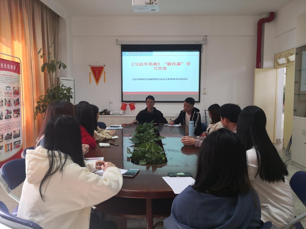 2019年11月21日下午,習(xí)近平新時(shí)代中國特色社會主義思想讀書社致遠(yuǎn)隊(duì)在馬克思主義學(xué)院行政樓107會議室開展《習(xí)近平用典》“敬民篇”學(xué)習(xí)交流活動。該次活動由致遠(yuǎn)隊(duì)指導(dǎo)老師江洪老師主持,致遠(yuǎn)隊(duì)全體成員參加。