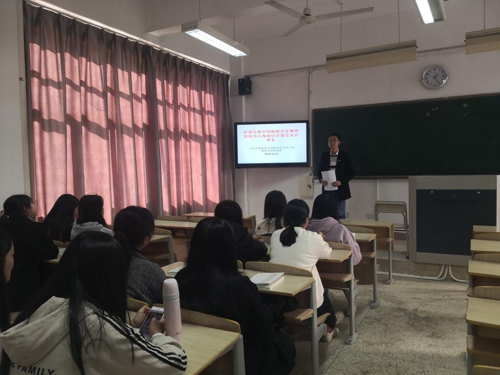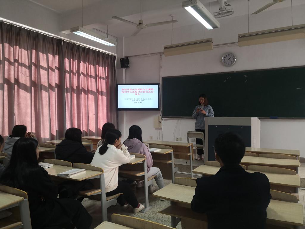 2019年12月11日下午,習近平新時代中國特色社會主義思想讀書社致遠隊在教學樓101開展參觀馬江海戰紀念館和中國船政文化博物館交流分享會。會議由指導老師江洪老師主持,致遠隊全體成員參加了會議。
