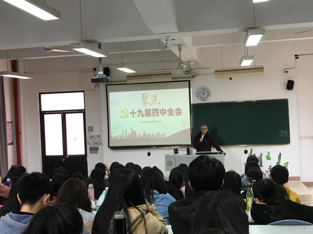 活動伊始,由胡濟林老師向大家簡要介紹黨的十九屆四中全會的重要意義,接著,新思想讀書社宣講團黃幼紅同學作了黨的十九屆四中全會精神的宣講。她宣講的題目是:準確把握國家治理的關鍵和根本。黃幼紅同學首先向大家介紹了,新中國成立70年來,在中國共產黨堅強領導下,我國各項建設取得的輝煌成就,她說中國共產黨是國家最高政治領導力量,辦好中國的事情關鍵在黨的觀點。接著,她向大家解釋準確把握國家治理的關鍵和根本,就要始終堅持黨的集中統一領導,要完善堅持黨的領導的機制體制。最后黃幼紅總結說,黨的領導是黨和國家事業發展的定海神針,作為新時代的大學生,我們要把黨的十九屆四中全會精神學習好、領會好、貫徹好,堅持學思并重、學通弄懂、學以致用,真正用先進思想武裝頭腦、指導實踐,為實現“兩個一百年”奮斗目標、實現中華民族偉大復興的中國夢而努力奮斗。