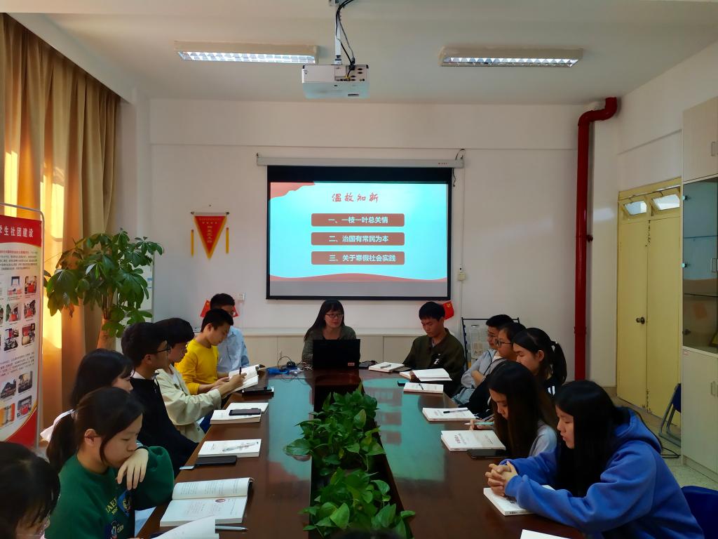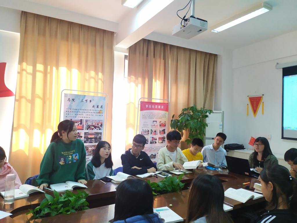 2019年1月6日下午,習近平新時代中國特色社會主義思想讀書社原夢隊在馬院研討室進行本學(xué)期最后一次交流學(xué)習。在學(xué)習前同學(xué)們都做了充分的準備,認真對待每一次學(xué)習是身為新時代青年的責任和義務(wù)。正如習近平總書記曾說的:“得其大者可以兼其小”。只有把人生理想融入國家和民族的事業(yè)中,才能最終成就一番事業(yè)。珍惜韶華、奮發(fā)有為,勇做走在時代前面的奮進者、開拓者、奉獻者,努力使自己成為祖國建設(shè)的有用之才、棟梁之材,為實現(xiàn)中國夢奉獻智慧和力量。”