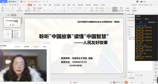 “陽春三月煙花如海,風月無邊吟贊春秋?!卑殡S著三月份的到來,習近平新時代中國特色社會主義思想讀書社星星隊于3月3日在釘釘直播平臺,進行了第三專題—人民友好故事的學習。這次的專題學習與前兩次不同,由星星隊員們聽楊盈老師為我們講解,變成了由同學們來做“老師”進行講解。