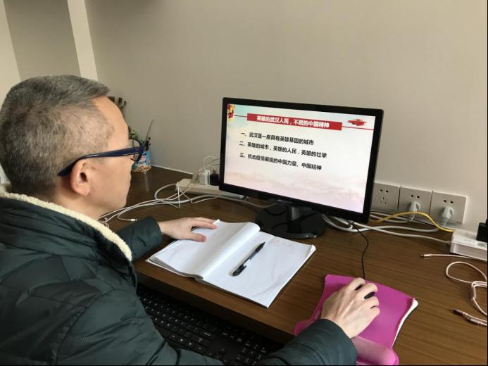 第二個環節是由胡濟林老師宣講《英雄的武漢人民,不屈的中國精神》。胡老師主要是從“武漢是一座具有一英雄基因的城市”、“英雄的城市,英雄的人民,英雄的壯舉”、“抗擊疫情展觀的中國力量、中國精神”等三個方面進行宣講。胡老師通過大量的數據和案例,通古博今,中外對比,深入解讀武漢人民的英雄氣概和中國人民的精神風貌,以及由此展現的中國力量和中國精神。