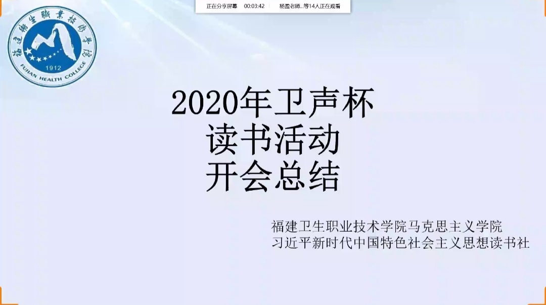 我校習近平新時代中國特色社會主義思想讀書社開展的第二屆“衛聲杯”之新思想讀書筆記活動持續近一個月,共收到64件作品申報參評,經過初審篩選后有17件作品入圍決賽。于2020年6月25日晚8點,在QQ群平臺召開作品評審視頻會議。評審團由4位馬克思主義學院指導老師及13名讀書社干事組成,秉著公平公正與認真負責的態度做好作品評審工作。