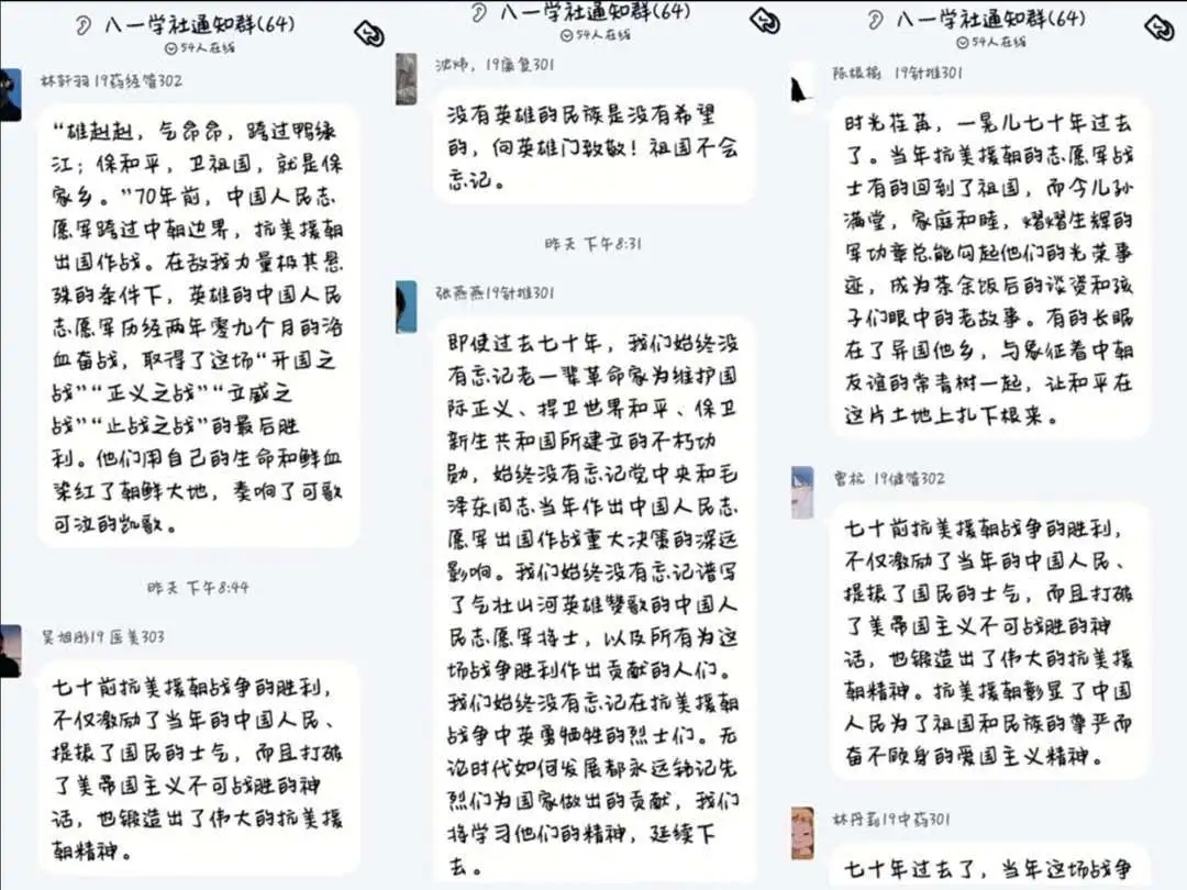 八一學社社員觀看紀念中國人民志愿軍抗美援朝出國作戰70周年大會后,心潮澎湃,引發共鳴,心得感想摘錄如下: