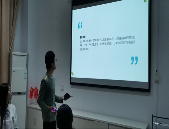 暑假三下鄉實踐活動對于現代大學生來說是一個使人經歷磨練不斷進步、不斷成熟的過程。活動開始由隊長帶領大家進入正題,介紹了本次活動開展的目的。