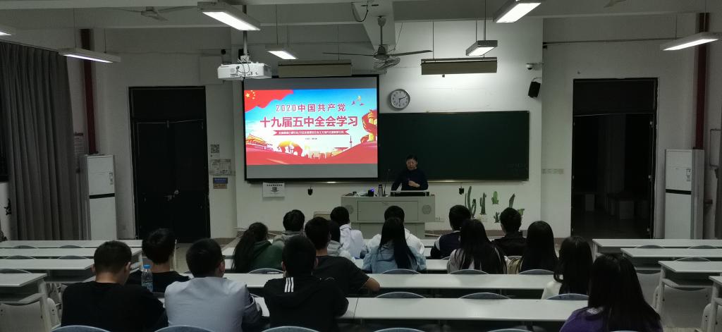 為深入學習貫徹習近平新時代中國特色社會主義思想及了解全面建設社會主義現代化國家新征程,2020年11月10號晚讀書社夢之隊于教學樓109由指導老師魏立娜宣講黨的十九屆五中全會精神。