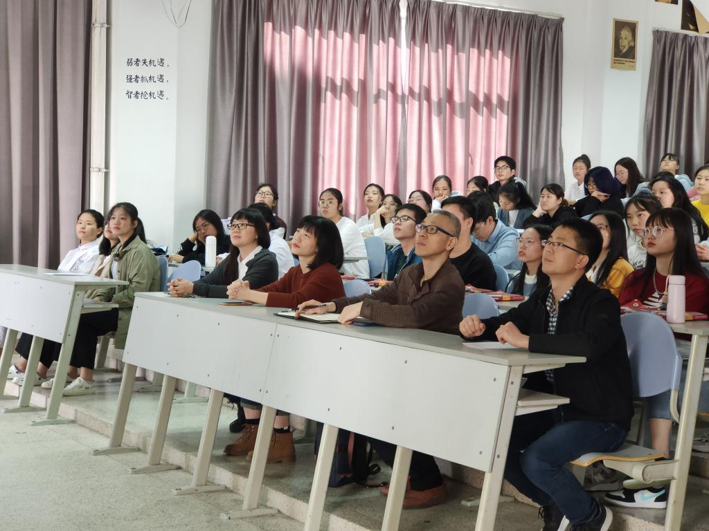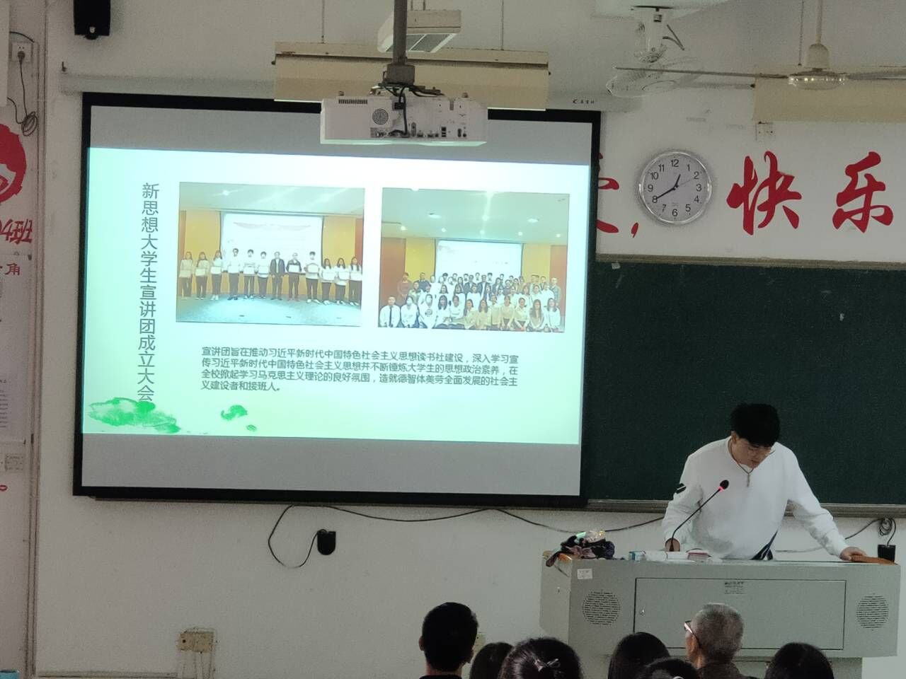 隨后,由青春隊指導老師、也宣講團指導老師胡濟林對讀書社工作做了指導發言,先是對同學們能夠加入讀書社表示肯定,讀書社是一個能讓同學們得到絕對鍛煉的地方,許多的活動以及多課程的學習能夠引導學生更加系統地學習習近平總書記治國理政思想,引導學生更好地認識中國、讀懂中國,致力成為社會主義核心價值觀的堅定信仰者、積極傳播者、模范踐行者。