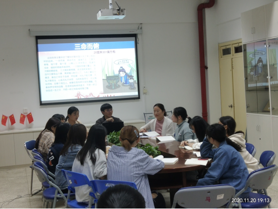 楊盈老師也和隊(duì)員們一起探討了學(xué)生會的不良風(fēng)氣,談到了權(quán)利和服務(wù)的關(guān)系,不能因?yàn)樽约旱臋?quán)利,就目中無人,做有害他人利益的事情。做人要始終戒驕戒躁,不能狂妄自大。楊盈老師還和我們分享她的經(jīng)歷,告訴我們,人的一生需要學(xué)習(xí)的東西有很多,學(xué)習(xí)永遠(yuǎn)不會停歇。