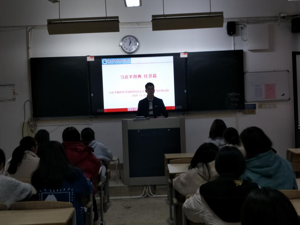 12月25日下午,習近平新時代中國特色社會主義思想讀書社致遠隊在教學樓101開展讀書活動,學習交流分享《習近平用典》“任賢篇”。此次活動由指導老師江洪老師主持,讀書社致遠隊全體成員準時參加了活動。