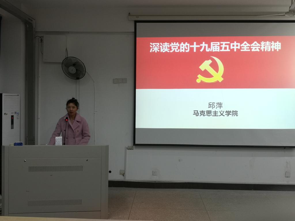 邱萍老師從規(guī)劃《建議》起草、規(guī)劃《建議》亮點、規(guī)劃《建議》突出民生議題、雙循環(huán)的新發(fā)展格局、如何實現2035年遠景目標等五個方面進行了系統宣講闡釋,既講清楚宏觀上的政策舉措,又不時引用接地氣的鮮活案例,讓學生們對五中全會精神有了切身的體會。邱萍老師勉勵大家把小我融入國家發(fā)展的大我之中,明確人生目標,找準奮斗著力點,學好本領,潛心鉆研,掌握觀察和認識世界的正確方法,努力成為國家棟梁。