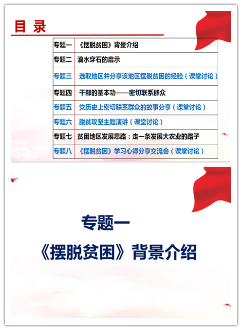 學習完后,大家就老師布置的思考題進行了積極的發(fā)言,希望能夠通過自己的專業(yè)學習為國家扶貧事業(yè)作出貢獻。