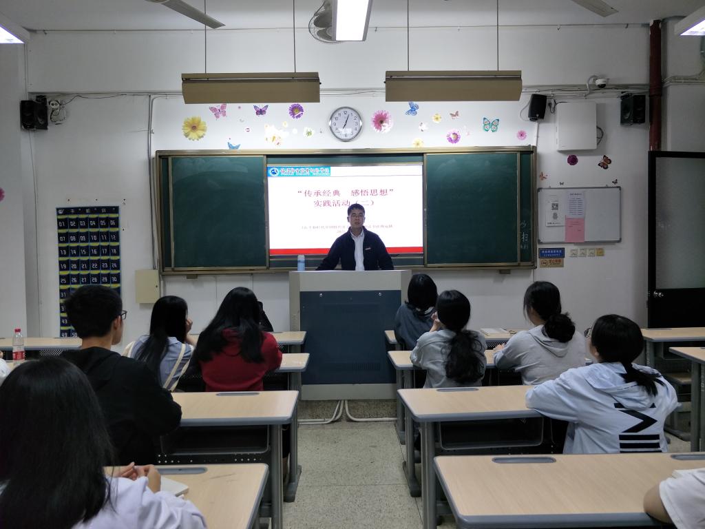 2021年4月13日晚上,習(xí)近平新時(shí)代中國(guó)特色社會(huì)主義思想讀書社致遠(yuǎn)隊(duì)在教學(xué)樓204開(kāi)展第二期“傳承經(jīng)典感悟思想”課堂實(shí)踐活動(dòng)。活動(dòng)由社團(tuán)指導(dǎo)老師江洪老師主持,全體選課學(xué)生參加了活動(dòng)。