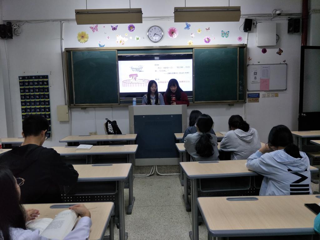 陳雨婷和林超婷這組同學(xué)匯報(bào)交流了“茍日新,日日新,又日新”這一篇。她們指出,習(xí)近平總書記曾在與青年代表座談、全國(guó)政協(xié)新年茶話會(huì)、布魯日歐洲學(xué)院演講、院士大會(huì)等多個(gè)場(chǎng)合引用了這句話,突出強(qiáng)調(diào)了創(chuàng)新的重要性,我們作為當(dāng)代大學(xué)生,更是要有創(chuàng)新的觀念,掌握創(chuàng)新的方法,不斷充實(shí)更新知識(shí),為以后走上工作崗位,更好地服務(wù)于祖國(guó)和人民,做好充分的準(zhǔn)備。