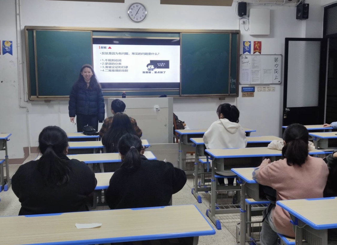 實踐課上,從1vs1個人開杠賽到4vs4小組對抗賽再到8vs8全班創(chuàng)意賽,每個同學們都參與其中,感受辯論,在實踐中轉(zhuǎn)化理論,掌握技巧,提升辯論能力。每一場辯論結(jié)束,老師都帶著大家復盤、點評。