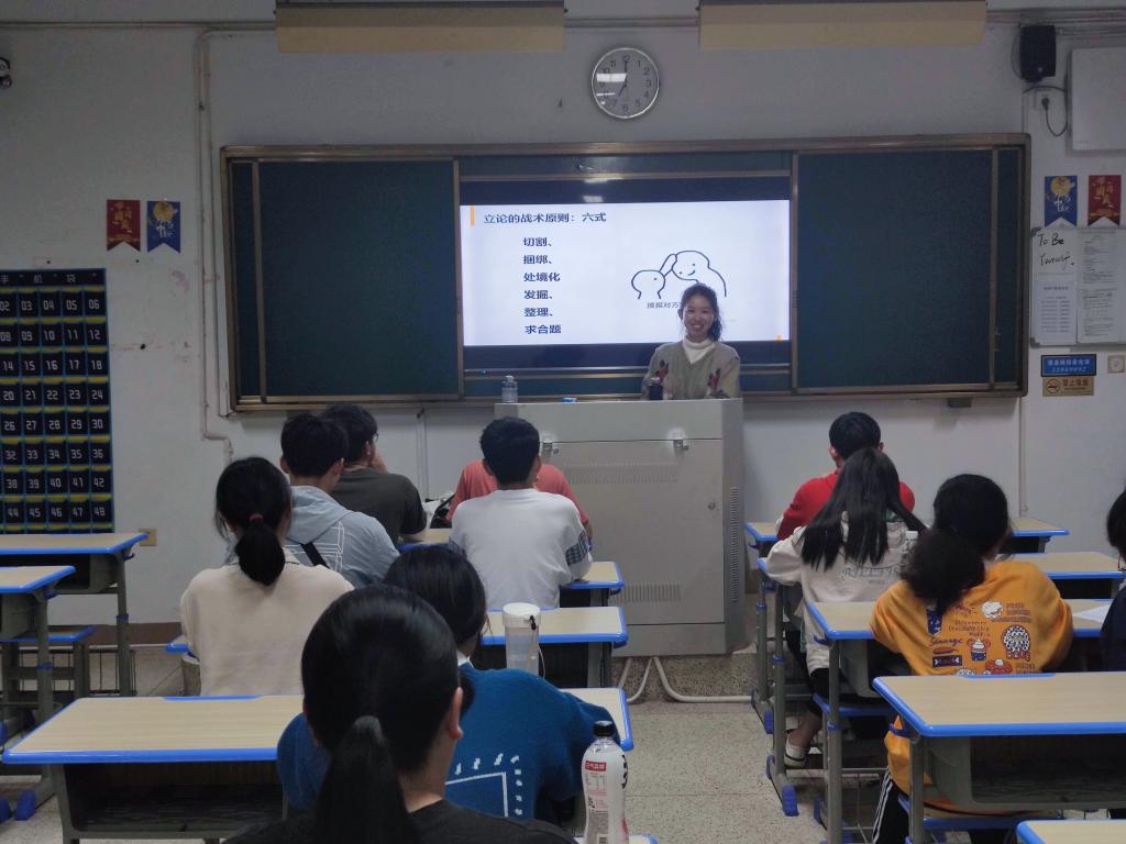 課程從唯物辯證法出發(fā),結(jié)合辯論理論和技巧循序漸進,從辯論要求、思路、態(tài)度到立論、質(zhì)詢、結(jié)辯技巧,四次理論課程干活滿滿,幫忙同學們構(gòu)建起對辯論思路的辯證思維的基本認識。