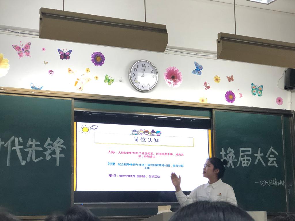 2021年4月23日晚上,時(shí)代先鋒協(xié)會(huì)在教學(xué)樓204教室舉行了社團(tuán)換屆大會(huì)。社團(tuán)指導(dǎo)老師陳洪月、丁愛(ài)芝出席了本次大會(huì),時(shí)代先鋒協(xié)會(huì)全體干事及27名社員參加此次大會(huì)。此次大會(huì)由時(shí)代先鋒協(xié)會(huì)社長(zhǎng)王嘉怡主持,換屆大會(huì)在王嘉怡社長(zhǎng)的致辭后拉開(kāi)了帷幕。