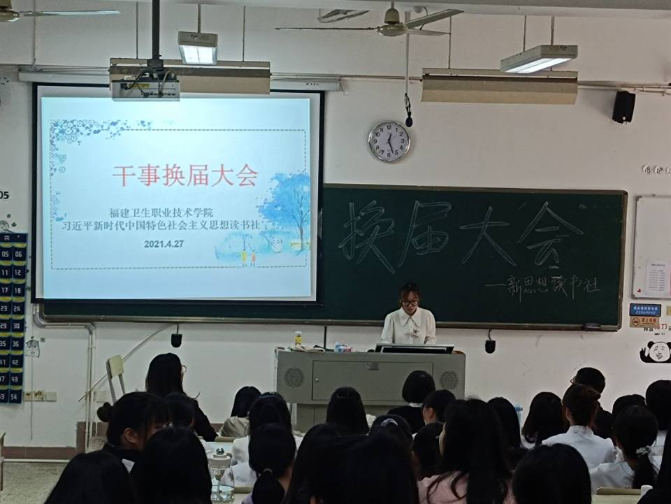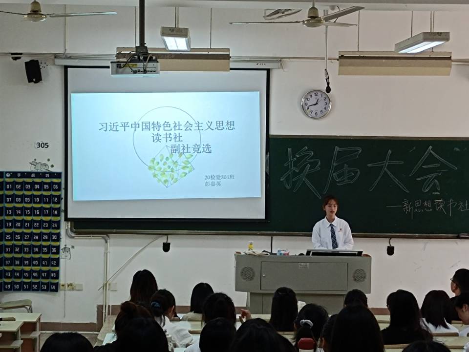 2021年4月27日,習近平新時代中國特色社會主義思想讀書社在教學樓114舉行換屆大會,出席會議的有:社團指導老師熊美蘭老師、江洪老師、楊盈老師、羅蕓老師,以及原夢隊、夢之隊、青春隊、致遠隊和星星隊五支分隊的成員。我們相信有了新一屆社團干事的共同協作,社團的發展會邁向新的臺階。大會由社長廖佳盈同學上臺擔任主持并宣布讀書社換屆大會正式開始。