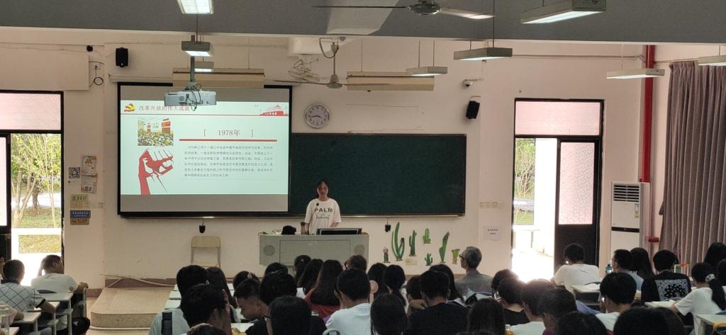 宣講人劉霏霏對改革開放的偉大成就進行了回顧,并且分析了改革開放成功的原因。她指出,改革開放是中國共產黨領導全國人民的偉大歷史性創造,更是黨的一次偉大覺醒。作為當代大學生,應該積極為中國夢的實現貢獻自己的力量,展現青年一代的智慧。之后,胡濟林老師做了精彩點評,勉勵大家增強愛國情懷,勇做改革開放的生力軍,以優異的成績和積極的行動,投身到改革開放的偉大實踐中。