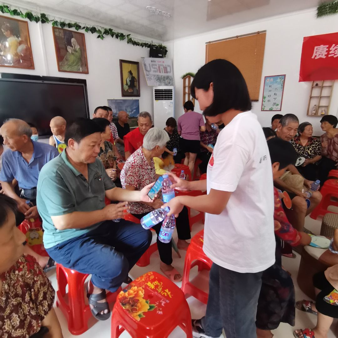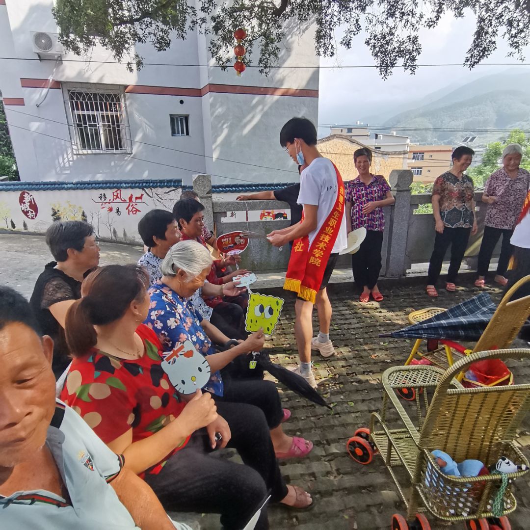 7月5日,馬上逐夢隊在新坡村文化服務(wù)中心開展了黨史宣講、健康知識宣講和愛心義診活動。活動當天,酷暑也無法阻擋村民們的腳步,他們早早前來等候,后勤組的同學(xué)熱情地為他們送去了小風(fēng)扇和水,陪他們聊天等候。