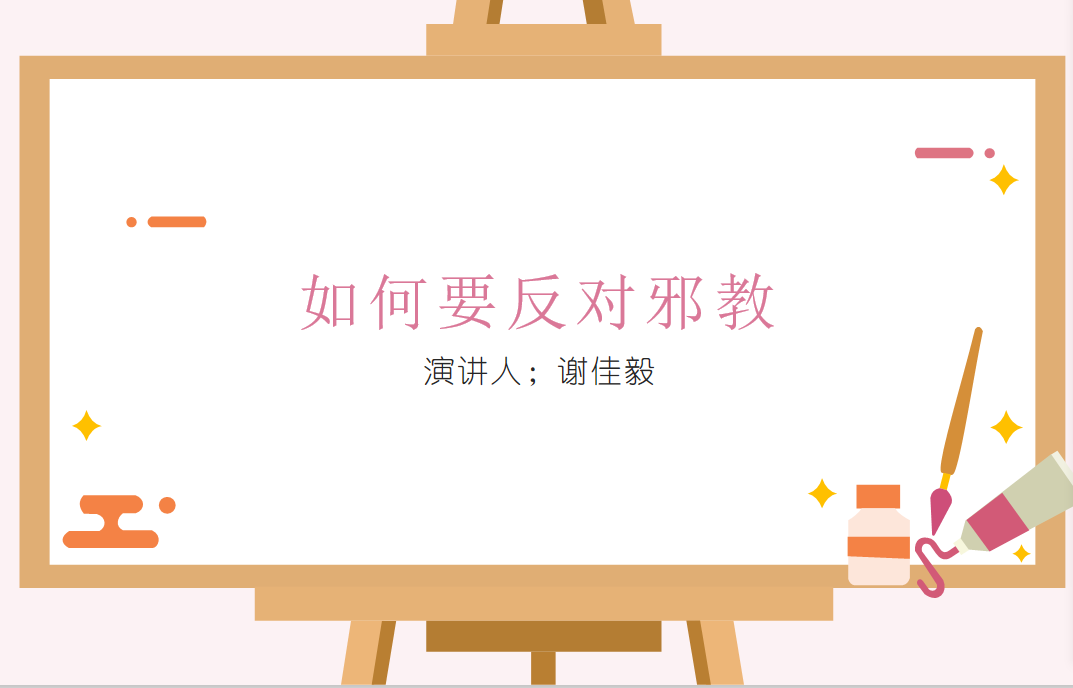 報告結束后,牛莉、謝佳毅兩位同學分別進行“反邪教”、“如何反對邪教”的分享與交流。他們從多方面、多層次深入講述了邪教的種類、組織結構、活動形式等,還舉例了各種案例與面對邪教的措施,進一步加深了同學們對邪教的認識,讓我們受益匪淺。兩位同學制作的課件精美,內容豐富,側重點不同,講解語言連貫,條理清晰,得到老師和同學的一致好評。課件展示結束后,同學們還分享了本次學習的心得體會。