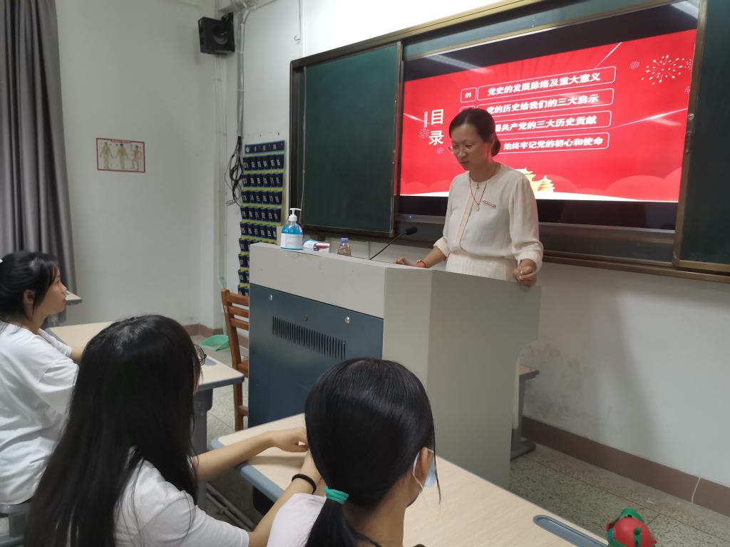 陳洪月從中國共產黨黨史的發展脈絡、中國共產黨的歷史給予的三大啟示、中國共產黨的三大歷史貢獻及其戰疫情、始終牢記黨的初心和使命等四個方面引導學生必須做到毫不動搖堅持黨對一切工作的領導,加強和完善黨的領導,強化“兩個維護”的高度自覺,將中國特色社會主義推向前進。