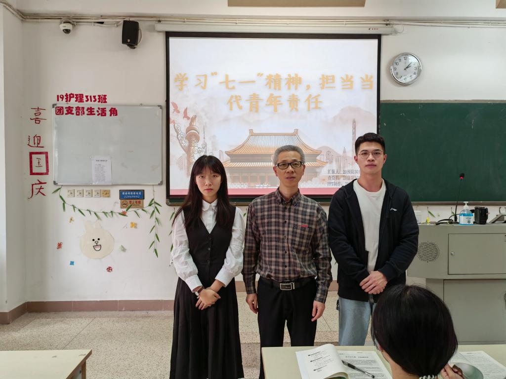 2021年10月19日下午,習近平新時代中國特色社會主義讀書社宣講團在胡濟林老師的指導下,在21美容301、21美容302班開展“學習‘七一’精神,擔當當代青年責任”線下專題宣講。