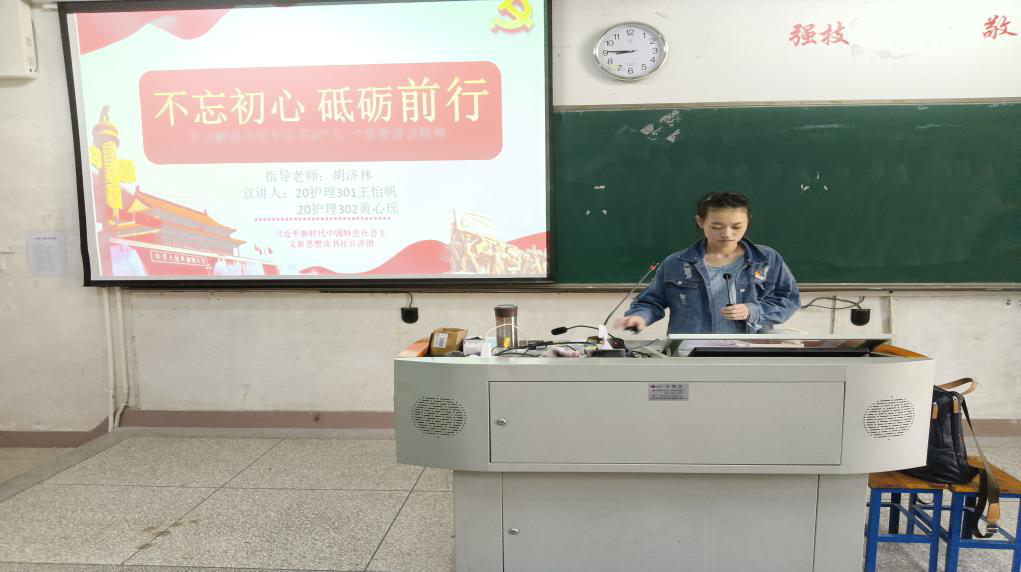 2021年11月5日下午,習近平新時代中國特色社會主義思想讀書社宣講團在胡濟林老師的組織下,到醫學技術系111教室為21檢驗501班、21影像501班開展“不忘初心、砥礪前行”專題宣講。