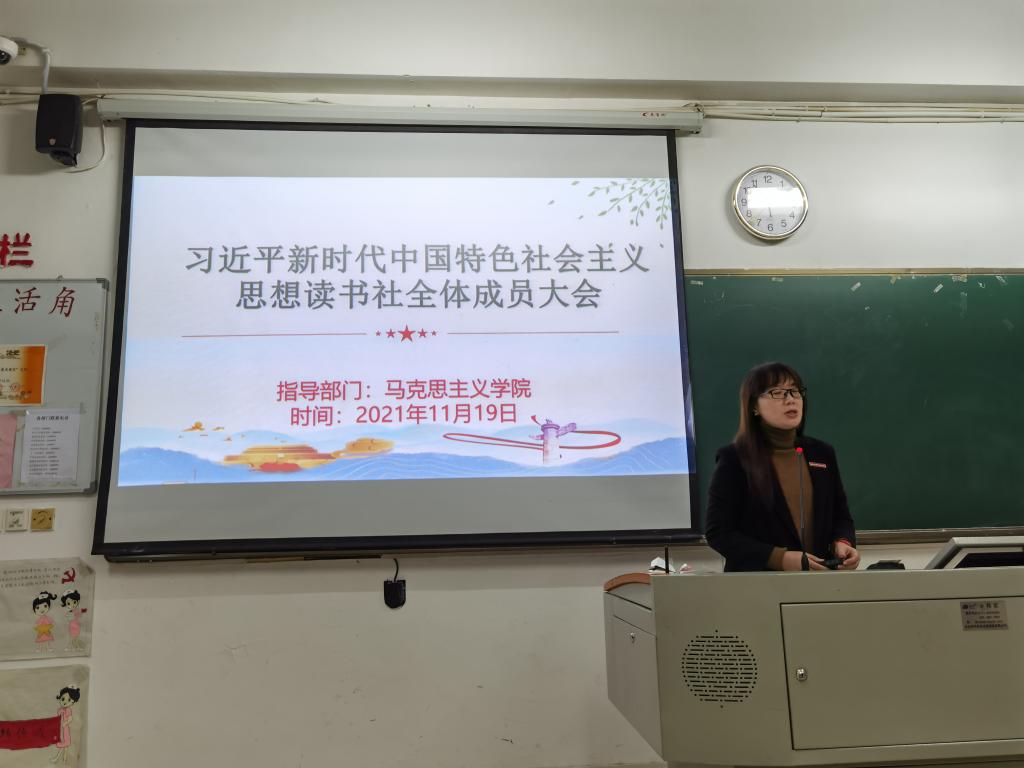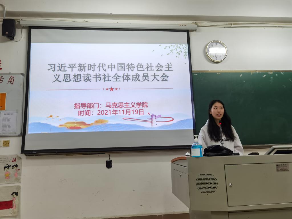 2021年11月19日下午,習近平新時代中國特色社會主義思想讀書社在教114舉行新生見面會,熊美蘭、胡濟林、江洪、鄭冰、羅蕓等指導老師以及全體社員參加本次見面會,見面會由社長陳琳琳主持。