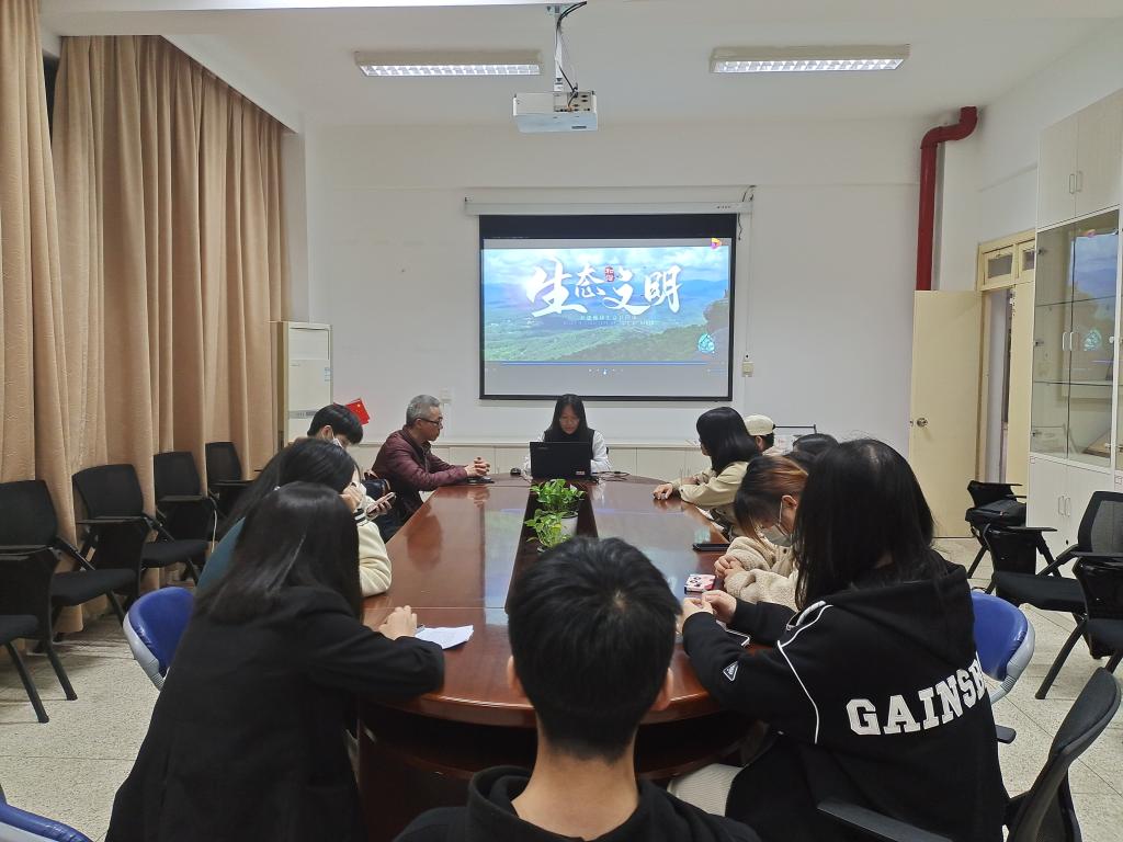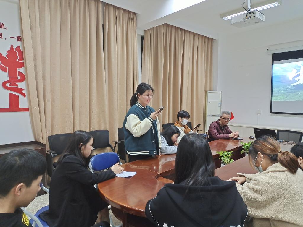 接著,會(huì)議進(jìn)入了第二次議程,由鄭聰賢同學(xué)匯報(bào)《習(xí)近平生態(tài)文明思想》,連慧琳同學(xué)上臺(tái)朗誦《最重要的還是保護(hù)好》,新隊(duì)友謝函翀同學(xué)演講《習(xí)近平總書(shū)記在福建建設(shè)生態(tài)文明的探索和實(shí)踐》。三位同學(xué)講解語(yǔ)言連貫,內(nèi)容豐富,得到同學(xué)與老師的一致好評(píng)。