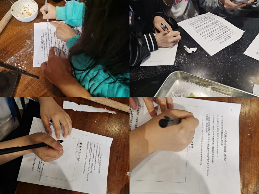 現場活動伊始,傳統節日研習社的指導老師顏冰鳳帶領全體同學學習了黨的十九屆六中全會精神,鼓勵大家從中國共產黨百年奮斗歷程中汲取經驗啟示,腳踏實地、精益求精,不負韶華,為夢想奮斗。隨后社長對冬至這一節氣進行介紹,讓同學們了解冬至的來歷、習俗等傳統文化知識。緊接著圍繞黨的十九屆六中全會知識與冬至小知識進行競答比賽,成員們以小組為單位踴躍參與、氣氛熱烈,通過知識競賽,同學們對黨的百年奮斗過程有了更深的了解,也掌握了冬至的相關知識。