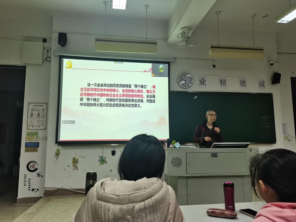 凜冬已至,萬物藏冬。中國共產(chǎn)黨第十九屆中央委員會第六次全體會議于2021年11月8日至11日在北京召開,這是一場在重要歷史關(guān)頭召開的一次具有重大歷史意義的會議,為了讓青年學(xué)生更好地掌握黨的十九屆六中全會精神,2021年12月20日,馬克思主義學(xué)院教師胡濟林在教學(xué)樓109為習(xí)近平新時代中國特色社會主義思想讀書社和21級部分學(xué)生作題為《解讀黨的十九屆六中全會精神》專題講座。