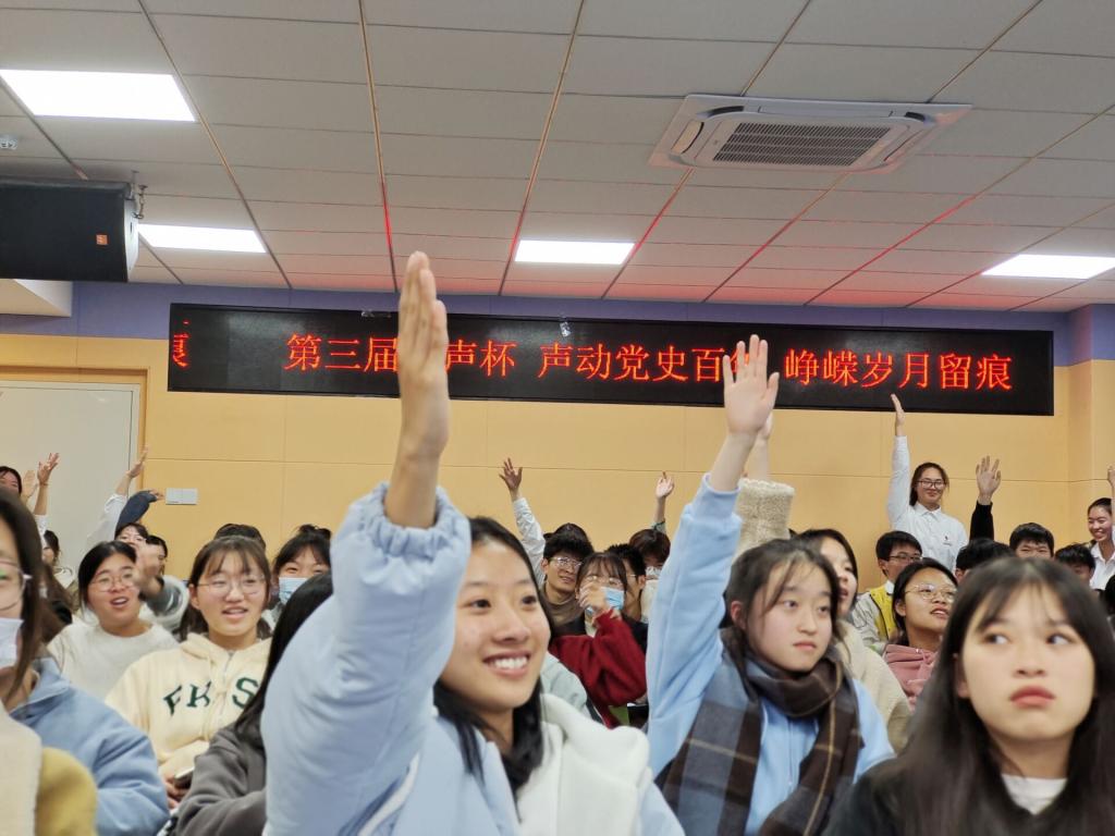 在情感和聲音的交織震撼中,所有參賽選手將精心準備的配音作品一一展現。“那個黑暗的年代,看不到一點光亮,活著都艱難,為什么他們還要去舍生赴死。后來我知道了,他們就是想燃燒自己來當這唯一的光亮,照亮當時,驚醒世人。這光亮著,直到多年后的現在,我不用茍活著。”陳花、黃惠琳和張舒榮團隊全情投入,聲情并茂地演繹,深情地刻畫影片中人物角色的形象,讓全場觀眾沉浸在“最干凈的靈魂”洗禮中,最終脫穎而出,摘得一等獎。比賽期間還穿插黨史知識搶答,現場觀眾搶答熱烈。