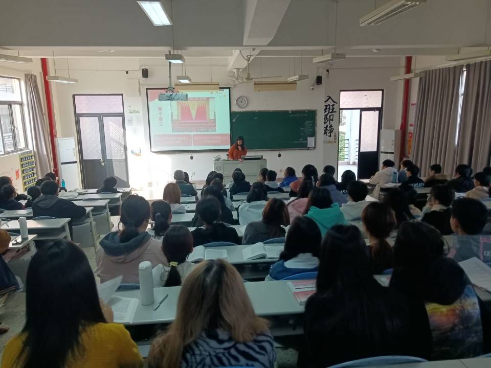 2022年1月3日上午,習近平新時代中國特色社會主義思想讀書社宣講團在胡濟林老師的組織下,到教學樓209為21老年保健301、21臨床303、21臨床304班開展“‘兩個確立’的決定性意義”專題宣講。
