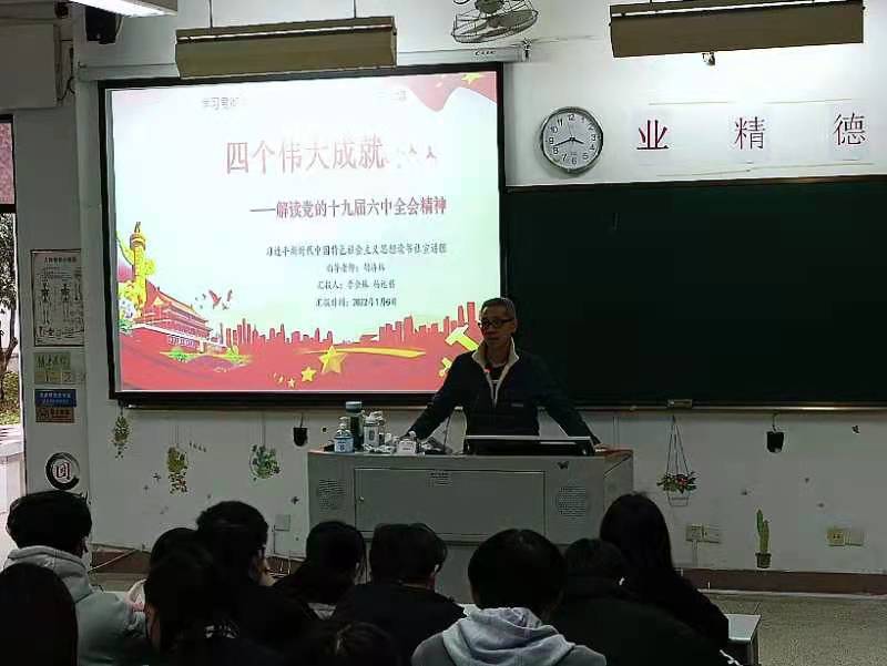 2022年1月6日下午,習(xí)近平新時(shí)代中國特色社會主義思想讀書社宣講團(tuán)在胡濟(jì)林老師的組織下,到教學(xué)樓109為21體保301 、21藥學(xué)305、 21藥學(xué)306班開展“四個(gè)偉大成就”專題宣講。