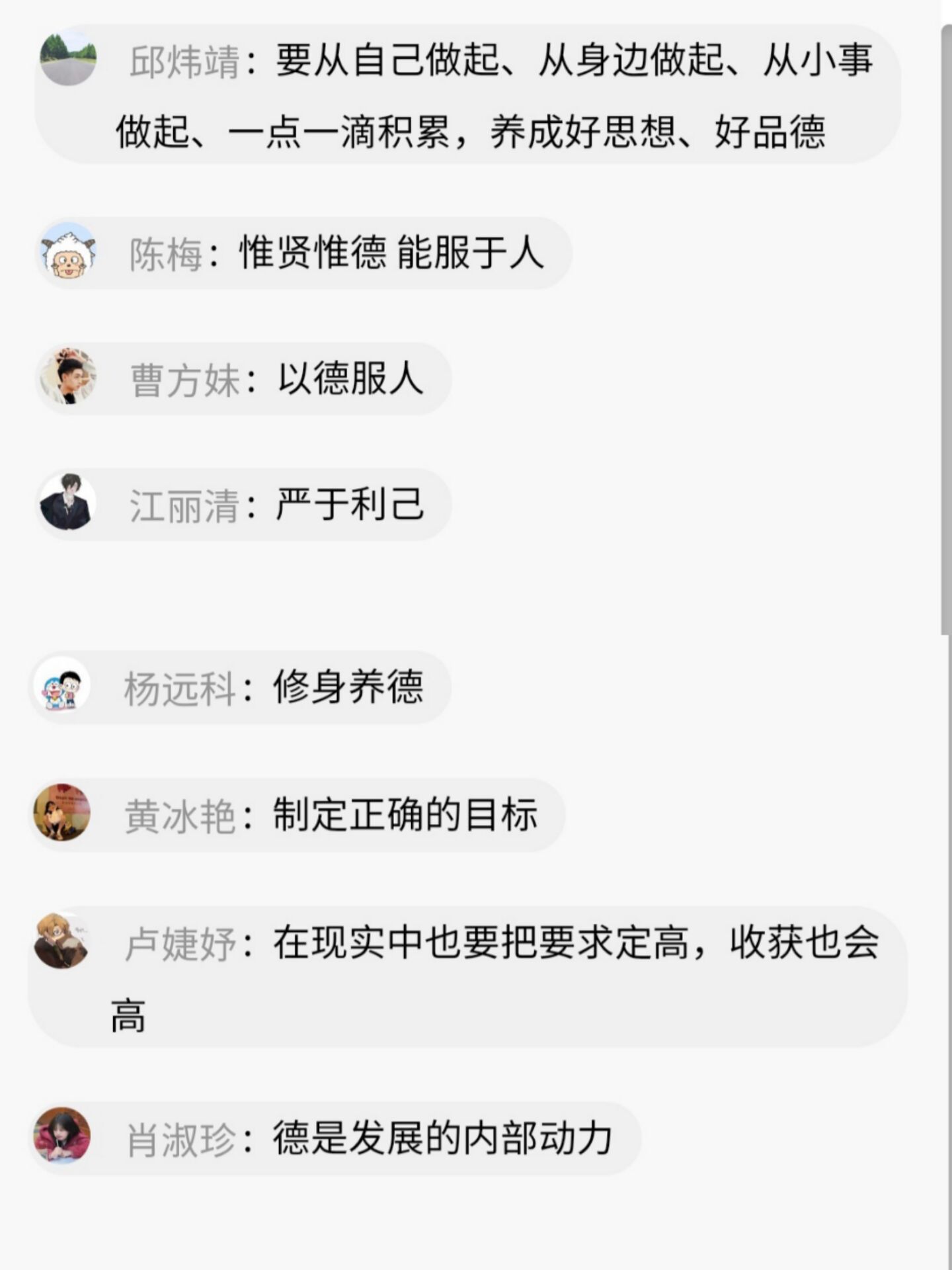 同學們學習后紛紛表示習近平總書記對道德的系列論述和要求對自己成長也十分有幫助,在以后的學習、工作、生活中,要加強道德修養,自律自強,做對社會、對國家有用的人。