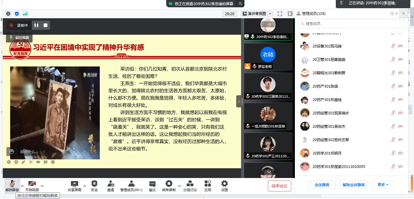 如何扣好人生的第一粒扣子?圍繞著這個主題,3月28日晚,校青馬班全體學員、習近平新時代中國特色社會主義思想讀書社原夢隊全體隊員線上齊聚,以接力分享的形式,共品《習近平的七年知青歲月》。活動邀請馬克思主義學院羅蕓老師擔任嘉賓。