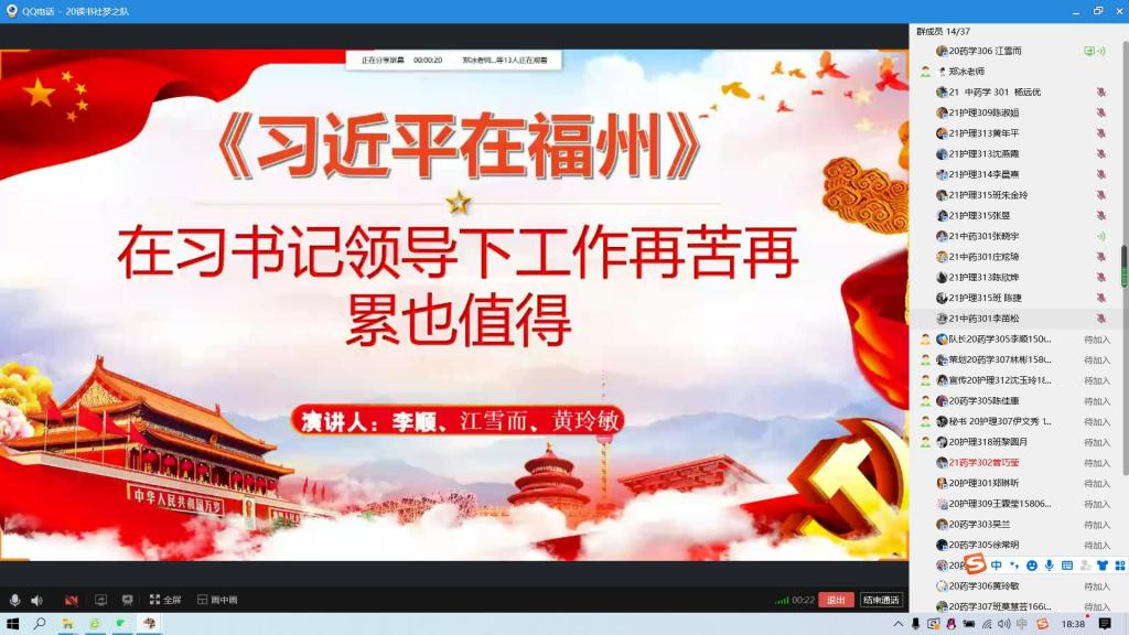2022年3月28日下午,因?yàn)橐咔橛忠淮渭又?,夢之隊的成員們?nèi)缂s聚集在線上,本次學(xué)習(xí)由夢之隊指導(dǎo)老師鄭冰主持,全體讀書社夢之隊成員參加,由李順、江雪而、黃玲敏三位同學(xué)主講。