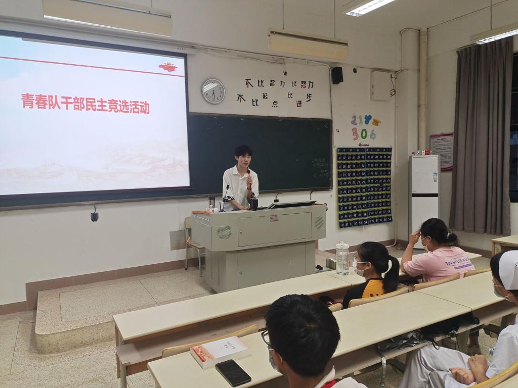 接著,會議進入了第二次議程:習近平新時代中國特色社會主義思想讀書社青春隊進行干事競選,首先上臺競選的是胡永康同學,上臺后便自告家門,概述自己的優缺點以及不足之處,闡述了對自己青春隊未來的工作計劃、工作方式等,其后上場的是房群宇同學,她落落大方,內容簡明扼要且與自身實際相結合。